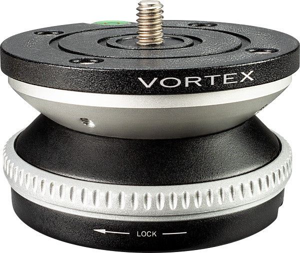 Smooth Movement, Precise Adjustments – Integrated level for precise positioning, plus twist to unlock/lock knurled control ring to keep you locked in. +/- 9.0 degrees of leveling capability. Low-profile, robust aluminum construction supports heavy optics while remaining incredibly smooth to operate. Compatible with most tripod-ready optics (1/4"-20 top thread). For use with the Vortex High Country™ II, Summit™ Carbon II, and Ridgeview™ Carbon tripods - or any tripod with 3/8"-16 thread.