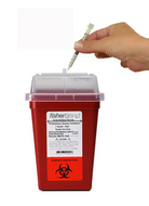Fisherbrand 1 Qt. Sharps Container. Polypropylene container with biohazard label. Translucent top has convenient holder for blood tubes with a needle remover connected to the holder. Sliding lid can snap into open position, slide fully shut without locking, or permanently lock shut. Safe to autoclave or incinerate.