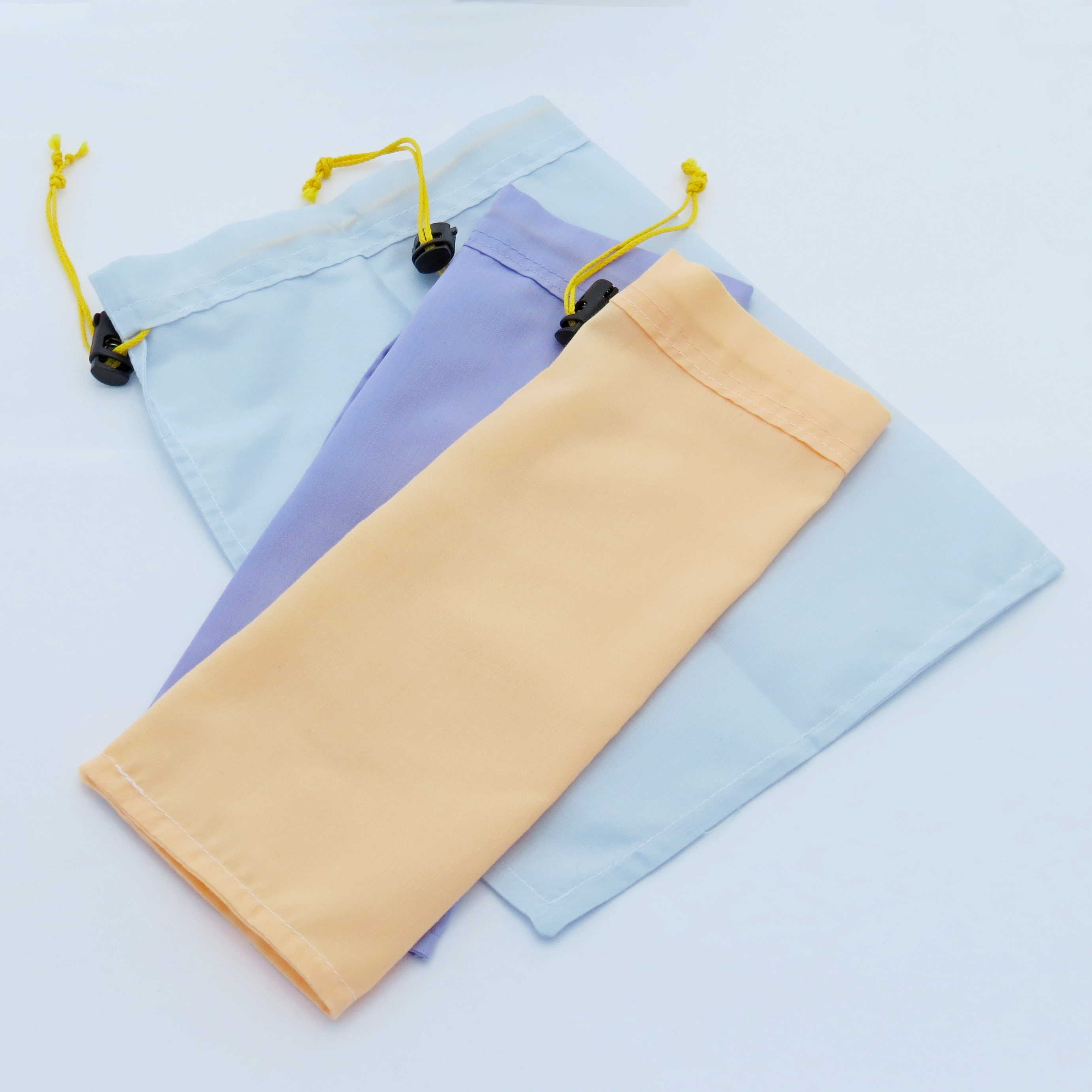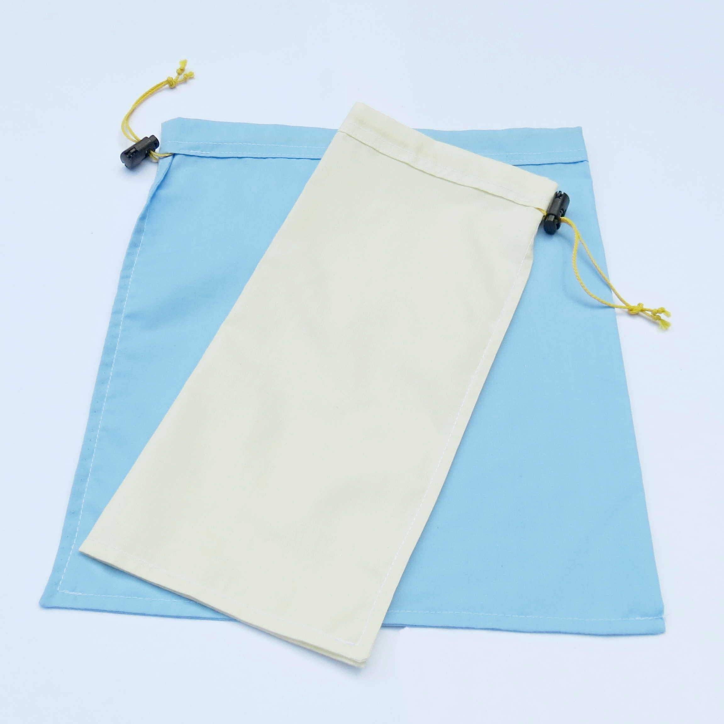 Made in the USA from assorted patterns and colors in breathable cotton/poly blend fabric for safely transporting your winged wildlife. Light color selections for low heat absorption. Drawstrings are waxed nylon with a sliding cord lock for quick, secure closure. Made with French seams on the interior to prevent claws from snagging. Sizes available: Small (7.5"x9.5"), Large (10.5"x12"). Wash cold on delicate cycle in a delicates bag if possible.